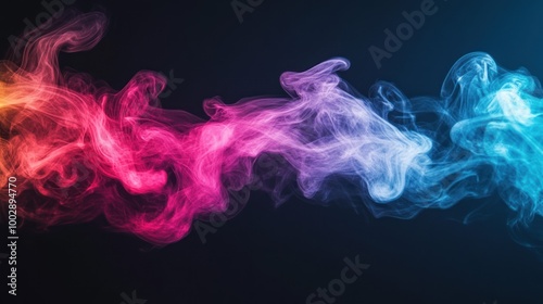 Colorful smoke wisps blend in a dark background, creating a dynamic visual effect.