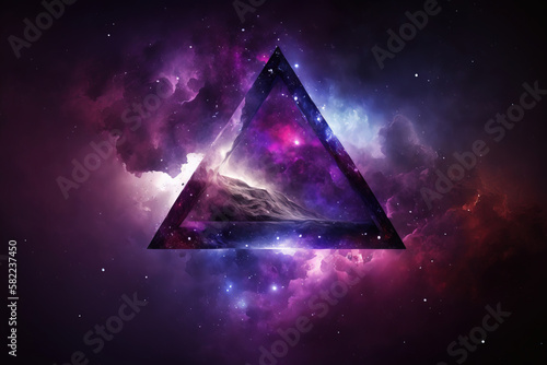 Colorful space with triangle symbol. Fantasy galaxy generative AI background