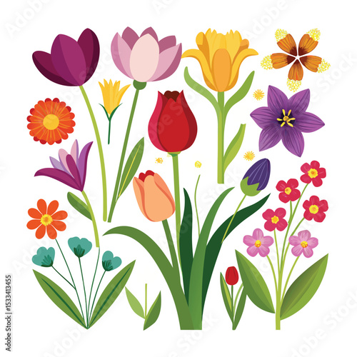 flower, spring flower, floral, tulip, daffodil, crocus, spring, bloom, blossom, botanical, illustration, vector, graphic, colourful, vibrant, bright, happy, cheerful, nature, garden, floral pattern, floral arrangement, bouquet, springtime, summer, colorful flowers, cute, pretty, beautiful, aesthetic, design element, background, pattern, texture, card, invitation, greeting card, wallpaper, website, web design, print, poster, banner, marketing