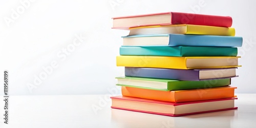 Colorful stack of books on white background, literature, education, reading, library, colorful, vibrant, stack, pile