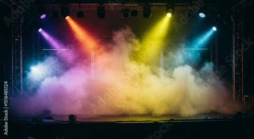 stage, lighting, colourful, light, smoke, vibrant, dramatic, atmosphere, performance, concert, show, event, music, entertainment, festival, ray, beam, colours, rainbow, purple, orange, yellow, blue, glow, bright, dark, moody, mysterious, energy, power, spectacle, impressive, captivating, awesome