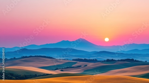 Colorful Sunrise Over Rolling Hills