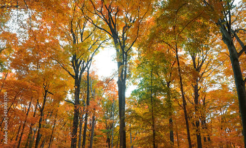 Colorful trees in autumn time in Deciduous forests of Michigan