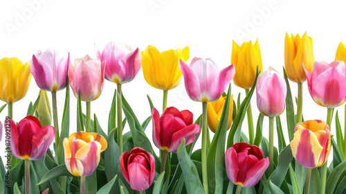 tulip, field, colourful, pink, yellow, red, flower, nature, botanical, plant, isolated, vibrant, blooming, garden, natural, floral, spring, landscape, arrangement, detailed