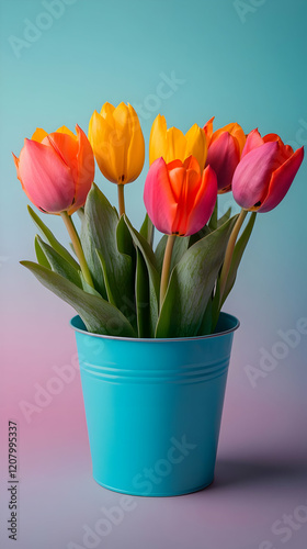 tulip, flower, spring, bouquet, colourful, pot, teal, background, gradient, vibrant, flower petals, bloom, blossom, floral, nature, beauty, colours, design, decoration, plant, garden, image, photo, photo, picture, wallpaper, artwork, illustration, bright, cheerful, happy, fresh, romantic, love, greeting, card, celebration, holiday, easter, summer, autumn, winter, macro, closeup, still life