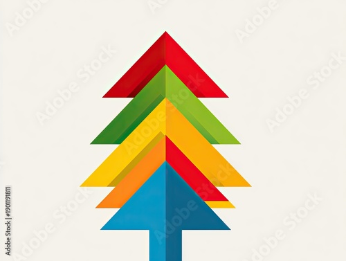arrow, up, colourful, tree, christmas, holiday, festive, design, graphic, vector, illustration, modern, geometric, abstract, symbol, direction, growth, progress, success, movement, energy, vibrant, bold, primary, secondary, colours, red, green, yellow, blue, orange, layer, stacked, overlap, shape, construct, build, structure, creative, simple, clean, contemporary, digital, isolated, white, background, style, minimalist, pattern
