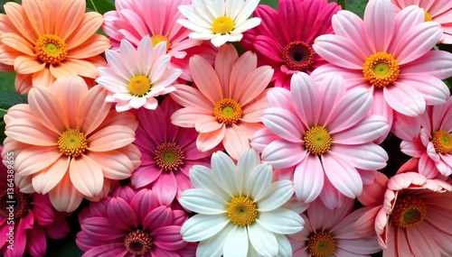 Colorful vibrant flowers array pink white peach blooms eye-catching lively floral arrangement decorative purposes, vibrant, peach