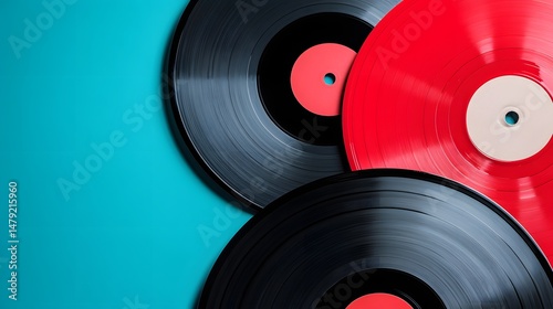 record, vinyl, music, colourful, disc, vibrant, blue, red, black, white, background, arrangement, top, view, flat, collection, retro, vintage, design, artistic, composition, pattern, texture, surface, circle, object, imagery, image, background, visual, style, modern, creative, audio