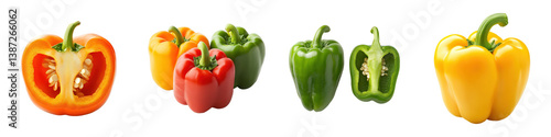 Colorful Whole and Halved Bell Peppers.
