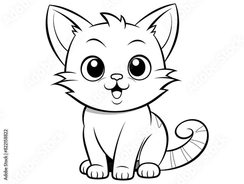 Coloring page outline simple illustration of a cute cat, white background