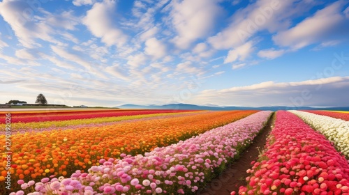 colours, lawn, flower, farm, illustration, photograph, vibrant, row, pink, yellow, white, picturesque, scene, calming, visually, striking, background, expanse, stunning, mix, capture, huge, eye, see, stretching, out, far, create, beautiful, landscape