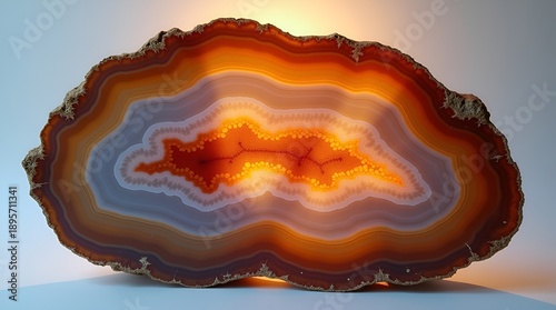 Color-Shifted Mineral Rings Revealed In Polished Agate Rock Cross Section