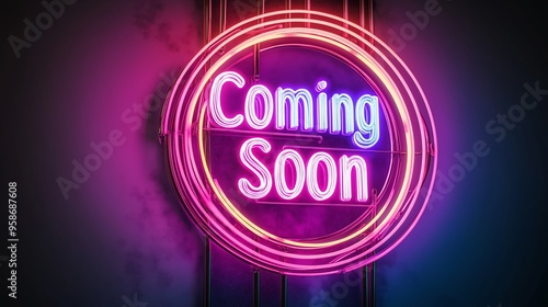 Coming Soon Retro Neon Sign on Trendy Background. AI Generative