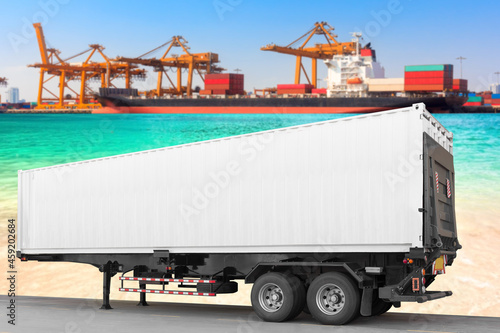 Commercial delivery cargo container truck working at commercial harbor