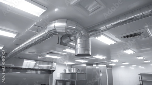 ventilation, commercial, kitchen, air, conditioning, duct, pipe, metal, ceiling, lighting, interior, industrial, system, stainless, steel, fluorescent, light, bright, white, design, engineering, technology, structure, construction, architectural, building, modern, clean, facility, equipment, service, space, overhead, infrastructure, utility, room, pipe, hardware, installation, maintenance, business, manufacturing, professional, workplace