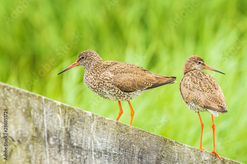 common redshank (tringa totanus) in farmland