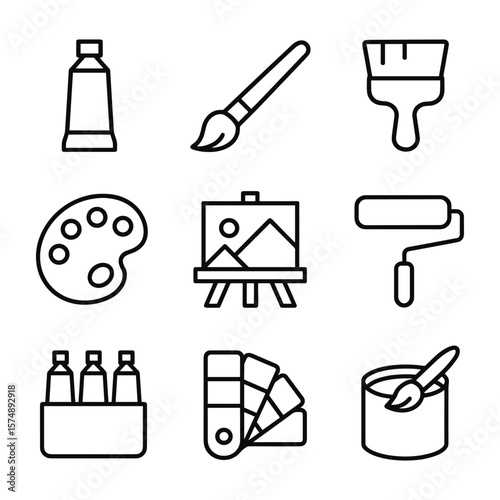 icon, artist, line, tool, collection, painting, brush, palette, paint, canvas, easel, painter, creative, studio, colours, draw, design, artwork, craft, fine, watercolor, vector, symbol, outline, black, linear, acrylic, oil, spray, roller, bucket, tube, pigment, medium, texture, stroke, technique, masterpiece, gallery, exhibition, wallpainting, portrait, landscape, abstract, realistic, impressionist, modern