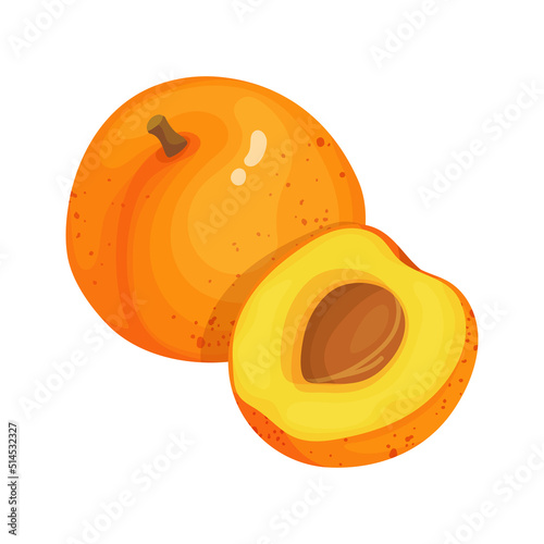 Composition of ripe peach with half of summer, juicy fruit.Cartoon vector graphic.