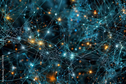 Computer generated visualization of a complex network of connected lines, Visualizing the invisible web of connections and vulnerabilities in a digital ecosystem