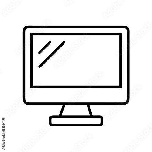 computer, monitor, display, screen, desktop, workstation, technology, office, equipment, vector, icon, device, electronic, hardware, flat, line, outline, modern, digital, interface, view, panel, rectangle, racked, table, work, business, home, cyberspace, multimedia, video, image, graphic, design, symbol, signs, element, shape, isolated, white, black, simple, minimalist, thin