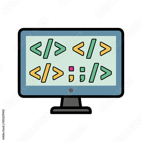 code, coding, computer, monitor, programming, technology, software, development, web, design, abstract, symbol, datum, digital, cyberspace, interface, vector, art, minimalist, clean, flat, style, white, background, screen, display, electronic, information, network, online, system, app, application, script, syntax, text, browser, window, illustration