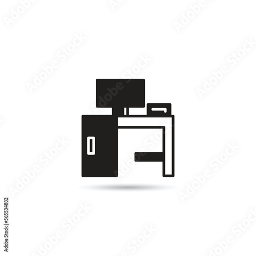 computer, desk, desktop, device, icon, illustration, monitor, office, signs, symbol, table, technology, vector