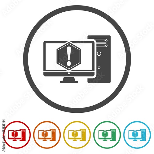 Computer with exclamation mark ring icon, color set