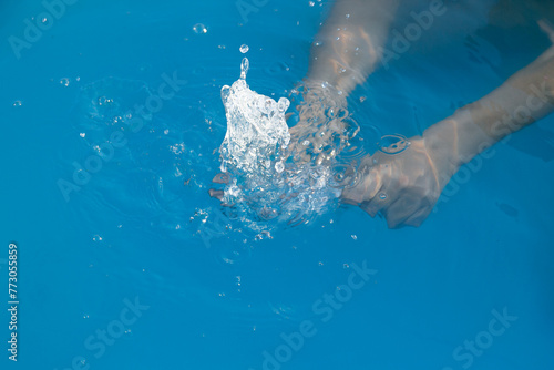 Con botella de plástico dentro del agua, manos cogiendo desechos de plástico