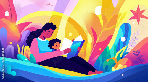 Concept: Bedtime story; Holiday: Children�s Book Illustration; Purpose: For promotion, educational content.