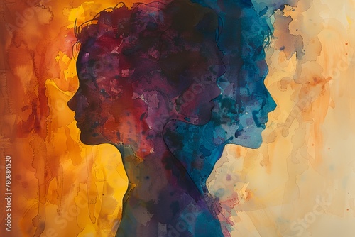 Concept of meditation and finding inner peace, with watercolor imagery portraying interactions between minds