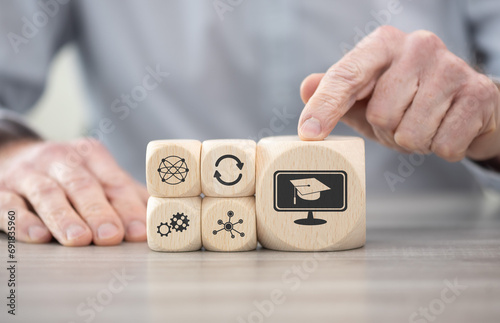 massive, online, open, course, wooden, course, academic, study, technology, learning, hand, network, application, college, education, app, teaching, e-learning, training, concept, symbol, school, block, home, cyberspace, university, student, distance, media, business, studies, global, cube, web