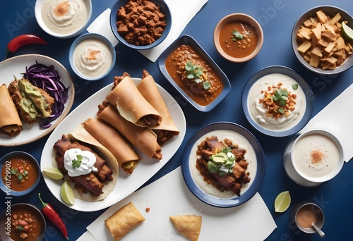 Concept photo of top view of Mexican food, Mexican cuisine, spicy food