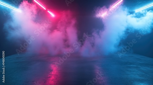floor, concrete, neon, light, smoke, blue, pink, purple, glow, bright, dark, abstract, background, texture, pattern, design, futuristic, modern, minimalist, graphic, digital, art, vibrant, colourful, light, shadow, contrast, empty, space, atmosphere, mood, ambience, scene, studio, stage, photo, illustration, render, three-dimensional