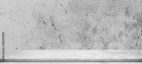 Concrete shelf table with cement wall. Use as montage for product display