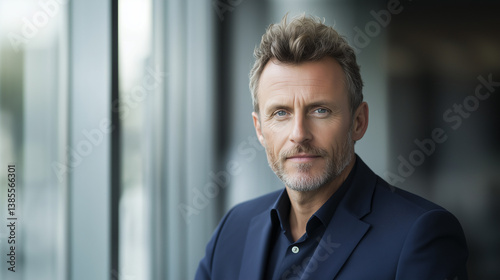 Confident businessman in navy suit, professional portrait symbolizing leadership and success