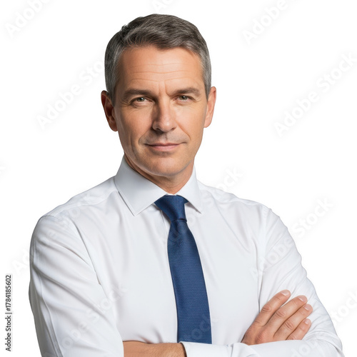 businessman, man, caucasian, adult, professional, business, white, shirt, blue, attaching, formal, wear, attire, clothing, confident, serious, looking, at, camera, crossed, arm, portrait, head shot, studio, shot, isolated, transparent, background, cut-out, executive