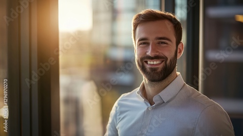 Confident businessman with a warm smile, exuding professionalism and approachability.