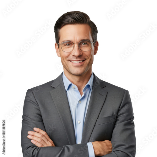 Confident Businessman with Glasses Arms Crossed Isolated PNG with Transparent Background