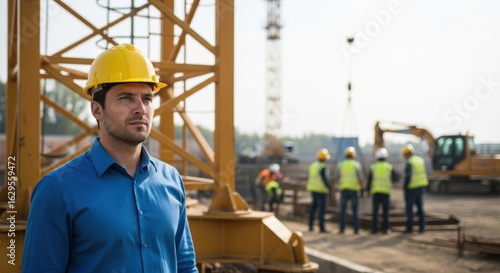 engineer, construction, site, team, machinery, men at work, hard hat, safety, crane, building, development, industrial, architecture, project, supervisor, equipment, teamwork, blue, shirt, outdoors, professional, urban, civil, contractor, structure, planning, infrastructure, technology, landscape, industry, progress, engineering, labor, blueprint, crew, helmet, transportation, job, foreman, sharpened, assembly, concrete, daytime, collaboration
