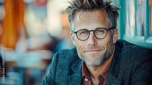 man, businessman, business attire, grey hair, beard, eyeglass, outdoors, cafes, eatery, blurred background, professional, corporate, mature, head shot, smiling, confident, happy, relaxed, lifestyle, urban, city, office, workplace, successful, businessperson, adult, male, middle-aged, bearded, casual attire, blur, environment, outside, indoor, interior