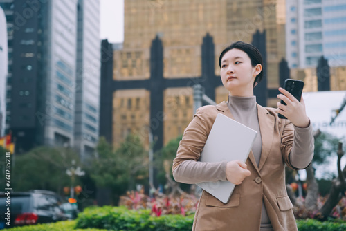businesswoman, urban, technology, professional, city landscape, laptop, mobile phone, career, downtown, young adult, business attire, skyscraper, on the go, female executive, connectivity, ambition, street, working woman, metropolitan, office worker, city life, success, productivity, multitask, startup, independent, real people, commerce, development, asian ethnicity, portrait, day, future, leadership