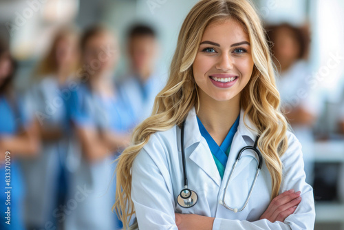 doctor, female, woman, medicals, health care, professional, hospital, nurse, team, stethoscope, confidence, smile, smiling, portrait, friendly, blond, medicine, care, staff, happy, clinic, people, young, adult, expert, collaborative, work, teamwork, person, colleague, practitioner, uniform, physician, nursing, health, dental, pharmacy, therapy, beautiful, trust, support, motivation, cheerful, dedicated