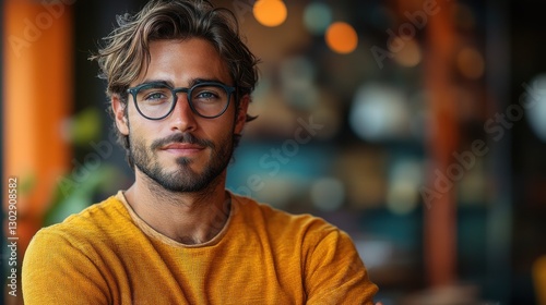 confident young man in casual business attire with a determined expression
