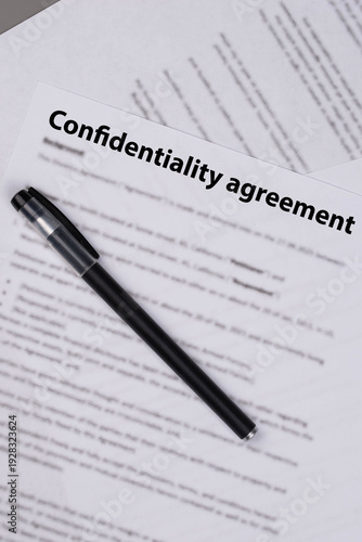 Confidentiality agreement document on office desk, legal contract for business privacy, nondisclosure and corporate security concept.