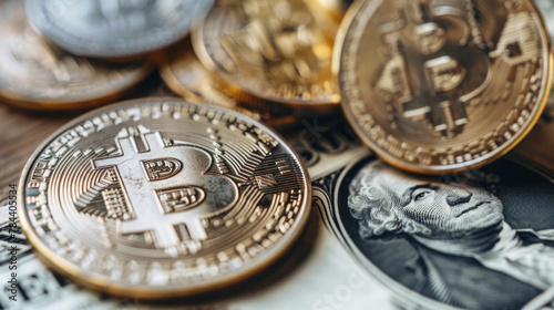 Confrontation between cryptocurrency and dollar. Bitcoin exchange, make money, bitcoin to dollar.