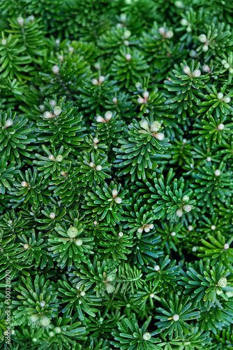 coniferous evergreen tree needles texture close up abstract natural background. template for design.