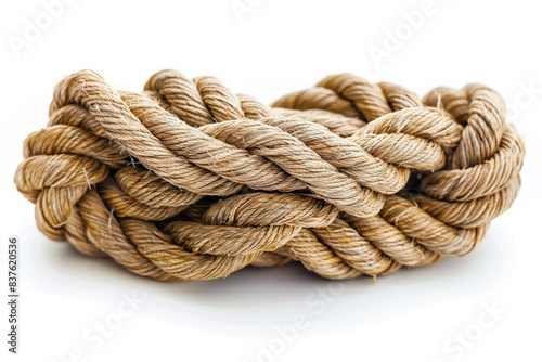 Connected concept , Different ropes tied isolate on white with clipping path,generative ai