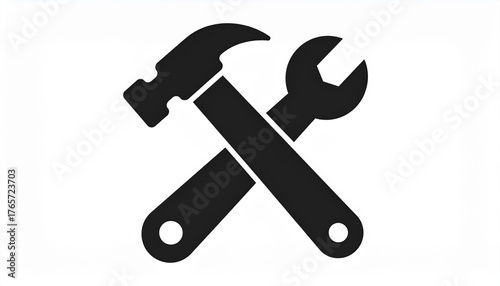 Construction and Repair Icon Hammer and Wrench Crossed, Representing Tools and Maintenance Services