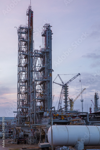 tank, crane, sunset, construction, danger, large, stair, colours, cloud, day, column, distillation, chemical, fuel, exterior, gasoline, power, steel, gas, metal, pipe, steam, pollution, building, overpass, factory, environment, view, plant, panorama, architecture, modern, sky, tower, urban, business, industry, oil, background