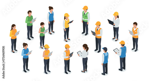 isometric, construction, team, meeting, men at work, safety, gear, uniform, collaboration, planning, architecture, engineering, teamwork, helmet, blueprint, discussion, group, people, building, project, management, coordination, site, industry, professional, communication, infrastructure, development, organisation, manpower, office